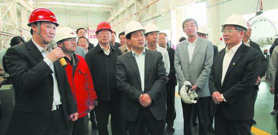 在生产现场,王正伟一行边看边和集团公司领导刘应宽、何怀兴等进行交谈。任育杰总经理对银星能源风电、太阳能发电产业发展规划、项目建设以及产业配套等具体情况向王主席一行进行了汇报。王正伟看到现场一排排的塔筒、叶片和风机非常高兴地说: " 这些产品在区内配套太好了 " !他指出,发展新能源技术,要加大科技的支撑力度,同时还要龙头企业的带动,把配套搞起来,风能和太阳能就会健康和持续的发展。他对随行的自治区、银川市相关领导指示,要帮助企业解决面临的人才、产品配套等一些问题,使新能源设备制造产业快速发展起来,成为地方的优势产业。