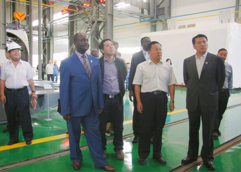 9月11日下午,中非共和国总统弗朗索瓦·博齐泽·扬古翁达一行在自治区党委常委袁家军等领导的陪同下参观了银星能源风电设备制造基地。